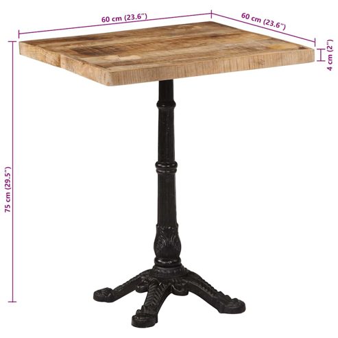 vidaXL Bistrotisch 60x60x77 cm Raues Mangoholz