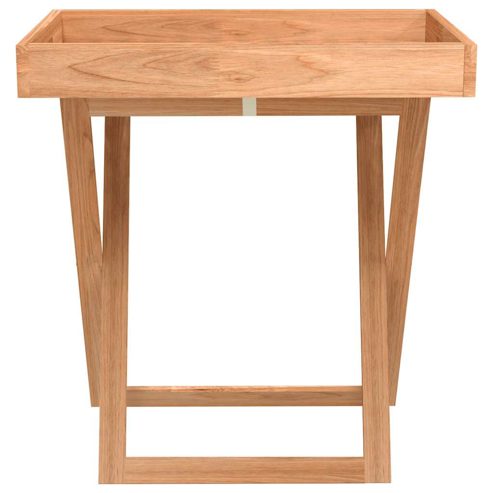 Mit seinem praktischen Design verleiht dieser klassische, klappbare Tabletttisch aus Holz deinem Wohnraum einen Hauch von natürlichem Charme. Massives Nussbaumholz: Massives Nussbaumholz ist ein dichtes und robustes Material, das sehr verschleißfest ist und für seine charakteristische Farbe und attraktive Maserung bekannt ist.Abnehmbare Tischplatte: Das Tablett mit Seitengriffen, das als Tischplatte dient, ist abnehmbar und eignet sich ideal zum Servieren von Speisen, Snacks und Getränken.Klappdesign: Dank der klappbaren Beine lässt sich der Tabletttisch flach zusammenklappen und platzsparend verstauen.Breite Anwendung: Mit dem klappbaren Tabletttisch kannst du eine Tasse Kaffee oder Tee auf dem Balkon oder der Veranda genießen. Darauf finden auch Topfpflanzen oder Snacks und andere Sachen in deinem Wohnzimmer, Schlafzimmer und sogar im Büro Platz. Achtung:Um das Umkippen zu verhindern, muss dieses Produkt mit der mitgelieferten Wandhalterung gesichert werden.Hinweis:Jedes Produkt wird mit einer Montageanleitung in der Verpackung für einen einfachen Zusammenbau geliefert. ** Material: Massives Walnussholz mit Öl-Finish ** Abmessungen: 52 x 36 x 56,5 cm (B x T x H)