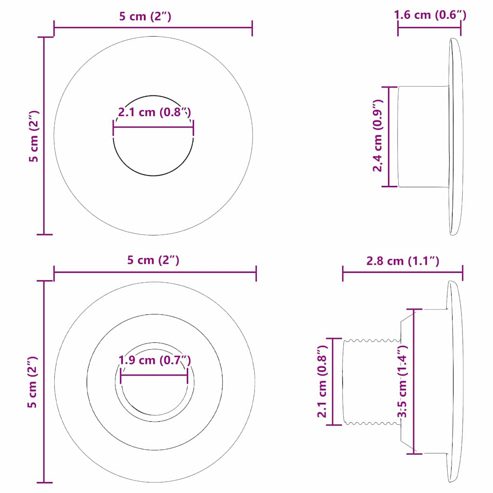 vidaXL Fußballtischlager für 5 x 5 x 2.8 cm Stangen 10 pcs