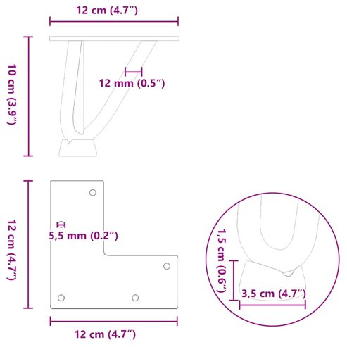 Diese Haarnadelbeine für Couchtische vereinen Form und Funktion. Sie sind die ideale Wahl, um deinen Couchtisch individuell zu gestalten. Langlebiges Material: Dieses Haarnadelbein ist aus massivem, pulverbeschichtetem Stahl gefertigt und somit robust und langlebig genug, um eine schwere Tischplatte zu tragen.Praktisches Design: Dieses Hairpin-Tischbein ist mit verstellbaren Fußnivellierern ausgestattet, die auch auf unebenen Böden für Stabilität sorgen und Bodenkratzer minimieren. Darüber hinaus verfügt die Halterung über vorgebohrte Löcher und mitgelieferte Schrauben für die Befestigung des Fußes an der Tischplatte (nicht im Lieferumfang enthalten), was den Montageprozess vereinfacht.Moderne Ästhetik: Das Hairpin-Tischbein bietet ein schlichtes und modernes Aussehen. Seine klaren Linien und sein geometrisches Design werten das Gesamtbild des Möbels auf. Gut zu wissen:Die Lieferung umfasst nur die Tischbeine. Die Tischplatte ist nicht im Lieferumfang enthalten. ** Farbe: Weiß ** Material: Massiver pulverbeschichteter Stahl ** Gesamthöhe: 10 cm ** Rohrdurchmesser: 12 mm ** Abmessungen der Halterung: 12 x 12 x 0,4 cm (L x B x T) ** Empfohlene Verwendung: Couchtisch ** Mit Nivellierfüßen ** ** Lieferung umfasst: ** 4 x Haarnadelbein ** Schrauben (M5x18mm) zur Befestigung der Beine mit der Tischplatte