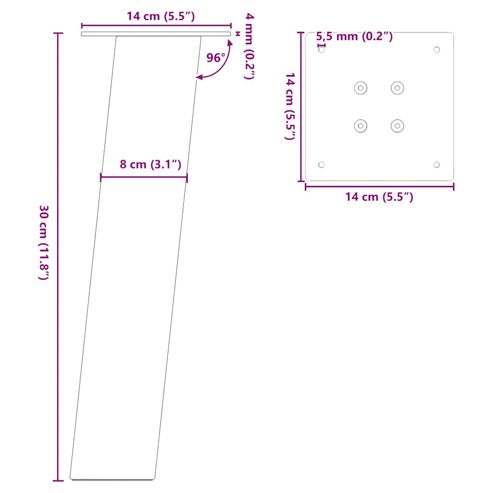 Diese Couchtischbeine verbinden Form und Funktion. Sie sind die ideale Wahl, um deinen Couchtisch individuell zu gestalten. Langlebiges Material: Dieses Couchtischbein ist aus pulverbeschichtetem Stahl gefertigt und damit robust und langlebig genug, um eine schwere Tischplatte zu tragen.Praktisches Design: Dieses Couchtischbein ist mit weichen Gummipuffern ausgestattet, die Kratzer auf dem Boden minimieren. Außerdem verfügt die Halterung über vorgebohrte Löcher und mitgelieferte Schrauben, mit denen das Bein an der Tischplatte befestigt werden kann (nicht im Lieferumfang enthalten), was die Montage erleichtert.Moderne Ästhetik: Das Bein des Couchtisches bietet ein schlichtes und modernes Aussehen. Seine klaren Linien und sein geometrisches Design werten das Gesamtbild des Möbels auf. Gut zu wissen:Die Lieferung umfasst nur die Tischbeine. Die Tischplatte ist nicht im Lieferumfang enthalten. ** Farbe: Weiß ** Material: Pulverbeschichteter Stahl ** Gesamthöhe: 30 cm ** Abmessungen der Röhre: 80 x 80 x 1,2 mm (L x B x T) ** Abmessungen der Halterung: 140 x 140 x 4 mm (L x B x T) ** Neigung 96 Grad ** Mit weicher Gummiauflage ** Empfohlene Verwendung: Couchtisch ** ** Lieferung umfasst: ** 4 x Couchtischbein ** Schrauben (M5x18mm) zur Befestigung der Beine mit der Tischplatte