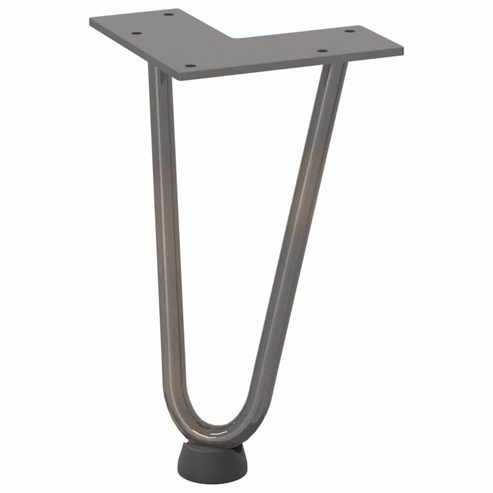 Diese Haarnadelbeine für Couchtische vereinen Form und Funktion. Sie sind die ideale Wahl, um deinen Couchtisch individuell zu gestalten. Langlebiges Material: Dieses Haarnadelbein ist aus massivem, pulverbeschichtetem Stahl gefertigt und somit robust und langlebig genug, um eine schwere Tischplatte zu tragen.Praktisches Design: Dieses Hairpin-Tischbein ist mit verstellbaren Fußnivellierern ausgestattet, die auch auf unebenen Böden für Stabilität sorgen und Bodenkratzer minimieren. Darüber hinaus verfügt die Halterung über vorgebohrte Löcher und mitgelieferte Schrauben für die Befestigung des Fußes an der Tischplatte (nicht im Lieferumfang enthalten), was den Montageprozess vereinfacht.Moderne Ästhetik: Das Hairpin-Tischbein bietet ein schlichtes und modernes Aussehen. Seine klaren Linien und sein geometrisches Design werten das Gesamtbild des Möbels auf. Gut zu wissen:Die Lieferung umfasst nur die Tischbeine. Die Tischplatte ist nicht im Lieferumfang enthalten. ** Farbe: Naturstahl ** Material: Massiver pulverbeschichteter Stahl ** Gesamthöhe: 20 cm ** Rohrdurchmesser: 12 mm ** Abmessungen der Halterung: 12 x 12 x 0,4 cm (L x B x T) ** Empfohlene Verwendung: Couchtisch ** Mit Nivellierfüßen ** ** Lieferung umfasst: ** 4 x Haarnadelbein ** Schrauben (M5x18mm) zur Befestigung der Beine mit der Tischplatte