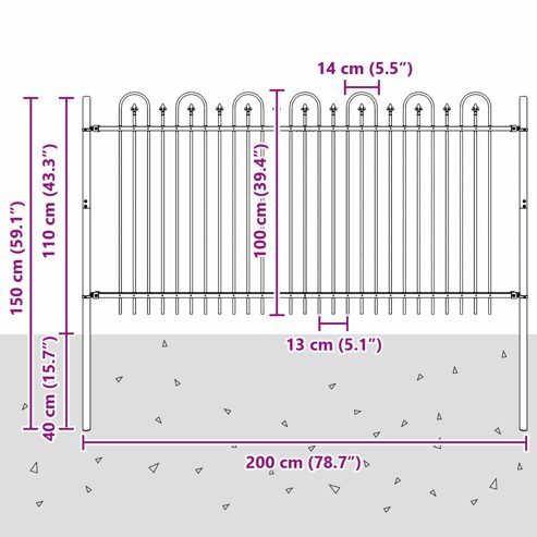 vidaXL Spitzenbogenzaun Schwarz 200 x 150 cm Pulverbeschichteter Stahl