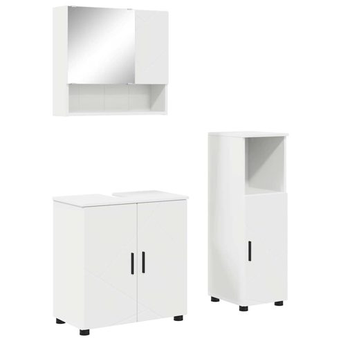 Check das moderne Badezimmermöbelset aus – eine coole und praktische Lösung für die Aufbewahrung, die perfekt in moderne Räume passt. Mit seinen klaren Linien und scharfen Formen kombiniert es Stil mit Funktionalität. Du kannst es sogar wandmontieren, um den Boden frei zu halten, ideal für kleinere Badezimmer. Die eingebauten Spiegel sorgen dafür, dass du immer gut aussiehst, wenn du dich fertig machst. Hochwertige Materialien: Aus Holzwerkstoff gefertigt, ist dieses Set stabil und sieht schick aus. Es hält sich gut in feuchten Umgebungen wie Badezimmern und ist somit eine clevere langfristige Wahl, die zu vielen verschiedenen Stilen passt. Moderne Griffe: Die eleganten Metallgriffe geben jedem Badezimmer ein edles Gefühl. Ihre klaren Linien passen zum minimalistischen Look der Schränke und sorgen dafür, dass alles ordentlich bleibt. Ein stylishes Detail! Anspruchsvolles Design: Die rechteckige Form und die glatten Türen bleiben einfach und funktionell. Dieses zeitgemäße Design passt zu vielen Einrichtungsstilen und ist nicht nur hübsch, sondern auch praktisch mit seinen clevere Aufbewahrungslösungen. Praktische Anwendung: Ideal für persönliche Pflege und Aufbewahrung, hat dieses Set einen Spiegelschrank, der perfekt in deinen Alltag passt. Sein benutzerfreundlicher Aufbau macht es einfach, organisiert zu bleiben und sich Zuhause ein bisschen zu verwöhnen. Bequeme Pflege: Es ist supereasy, es schick zu halten – einfach mit einem feuchten Tuch abwischen. Diese einfache Pflege hält alles in top Zustand, ohne aggressive Chemikalien, sodass es lange gut aussieht! ** Farbe: Weiß ** Material: Holzwerkstoff ** Gesamtabmessungen: 61 x 35 x 64 cm (L x B x H) ** Gewicht: 40.71 kg ** Langlebig ** Mit flachspiegel spiegel ** Rahmenmaterial: Holzwerkstoff ** Mit 4 türen ** Innen- / außenbereich: Nur für drinnen ** Lieferumfang: ** 1 x Badezimmer-Waschbecken Schrank ** 1 x Badezimmer-Spiegelschrank ** 1 x Badezimmer-Schrank ** Anzahl artikel: 3 ** Montage erforderlich: Ja