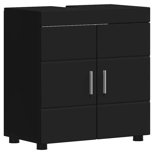 Mit diesem Badezimmer-Schrankset aus Holzwerkstoff bringst du moderne Eleganz in dein Bad. Die glatte Textur und das matte Finish machen das Set zu einem Blickfang mit klaren Linien und einer schicken, rechteckigen Form. Es ist perfekt für alle, die ihren Raum mit viel Stauraum aufwerten wollen, ohne auf ein ansprechendes Design zu verzichten. Es bietet eine einfache und smarte Lösung für die Organisation, die sich mühelos in moderne Badezimmer integriert. Materialien: Hergestellt aus hochwertigem Holzwerkstoff, kombiniert dieses Badezimmer-Schrankset Langlebigkeit mit Stil. Die Oberfläche hat einen zeitlosen Charme und ist sowohl praktisch als auch schön. Mit einer glatten, matten Fläche bleibt dein Bad immer frisch und ordentlich. Enthaltene Komponenten: Jedes Element des Sets wurde mit Blick auf Funktionalität entwickelt. Es hat geräumige Fächer und robuste Schubladen, die das Chaos in Ordnung bringen. Elektronische Teile sind inbegriffen, aber die Grundelemente bieten viel Stauraum. Merkmale / Funktion / Design: Dieses Schrankset verbindet modernes Design mit praktischen Funktionen. Ohne viel Schnickschnack wirkt es stilvoll und das matte Finish sorgt für einen eleganten Look. Es bietet viel Stauraum und ist dabei super anpassungsfähig. Empfohlene Verwendung: Ideal für Badezimmer, um Toilettenartikel, Handtücher und andere Essentials problemlos zu verstauen. Es fügt sich gut in verschiedene moderne Badezimmerstile ein und hebt jeden Raum hervor. Es ist besonders toll für Innenräume, die auf Effizienz setzen, denn es bietet funktionalen Stauraum. Pflege & Wartung: Die Pflege ist einfach – regelmässig mit einem feuchten Tuch abwischen reicht aus. Verwende keine aggressiven Reinigungsmittel, damit das matte Finish lange schön bleibt. Diese einfache Pflege ergänzt die robuste Verarbeitung und sorgt dafür, dass dein Schrank auch in Zukunft toll aussieht. ** Farbe: Schwarz ** Material: Holzwerkstoff ** Oberfläche: Matt ** Gesamtabmessungen: 60 x 34 x 63 cm (L x B x H) ** Langlebig ** Reichlich Stauraum ** Mit tür ** Innen- / außenbereich: Nur für den innenbereich ** Lieferumfang: ** 1 x Waschbeckenunterschrank ** Montage erforderlich: Ja ** Sortimentsname: Tulum