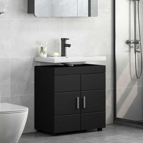 vidaXL Badezimmer Waschbecken Schrank TULUM Schwarz 60 x 34 x 63 cm