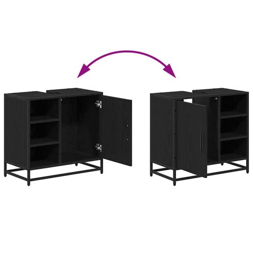 vidaXL Badezimmer Waschbecken Schrank mit Regal Schwarz Eichen-Optik