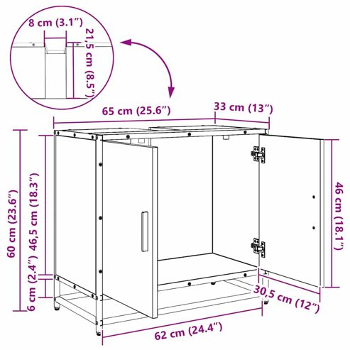 Dieser moderne Waschbecken-Schrank bringt frischen Wind in dein funktionales Badezimmer. Mit Liebe zum Detail und einem Gespür für Design hilft er, Ordnung und Stil zu kombinieren. Seine schlanke, rechteckige Form passt super in viele Badezimmer und ist ein echter Blickfang. Er eignet sich perfekt für alle, die bei der Aufbewahrung im Bad Wert auf Einfachheit und Eleganz legen. Der Schrank passt zu verschiedenen Einrichtungsstilen und gibt deinem Badezimmer einen modernen Touch, egal ob für deinen Rückzugsort oder das Gästezimmer. Robuste Bauweise: Dieser Schrank ist langlebig und hat eine stabile Struktur. Der abriebfeste Holzwerkstoff schützt vor Kratzern und Abnutzung. Ideal für jeden, der neben Stil auch Wert auf Qualität legt. Funktionales modernes Design: Mit klaren Linien und minimalistischem Look wirkt er zeitgemäß. Matte schwarze Stahlgriffe bringen Eleganz und einfache Bedienbarkeit. Der Beinstil sorgt für stabilen Halt und kombiniert Ästhetik mit Funktion. Geräumiger Stauraum: Nutze den Platz, um Badutensilien ordentlich zu verstauen. Er erfüllt viele Aufbewahrungsbedürfnisse und hilft, das Badezimmer aufgeräumt zu halten. Die gut erreichbaren Fächer machen den Alltag leichter. Schlichte Ästhetik: Die strukturierte Oberfläche sieht nicht nur gut aus, sondern ist auch feuchtigkeitsresistent und behält sein Aussehen und Funktion über die Zeit. Einfache Pflege: Halte das schlanke Design mit wenig Aufwand. Ein feuchtes Tuch reicht, um das frische Aussehen zu erhalten und die Pflege zu minimieren. So bleibt der Schrank immer wie neu und ist die perfekte Wahl. ** Farbe: Schwarz Eichen-Optik ** Material: Holzwerkstoff ** Gesamtabmessungen: 65 x 33 x 60 cm (L x B x H) ** Gewicht: 14,8 kg ** Langlebig ** Rahmenmaterial: Stahl ** mit Tür ** Innen- / Außenbereich: Nur für den Innenbereich ** Lieferumfang: ** 1 x Badezimmer Waschbecken Schrank ** Montage erforderlich: Ja