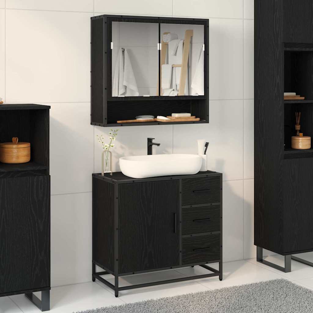 vidaXL Badezimmermöbel-Set 2 pcs Schwarz Eichen-Optik Holzwerkstoff