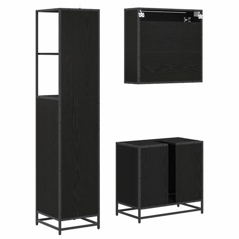 vidaXL Badezimmermöbel-Set 3 pcs Schwarz Eichen-Optik Holzwerkstoff