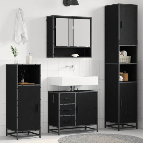 vidaXL Badezimmermöbel-Set 3 pcs Schwarz Eichen-Optik Holzwerkstoff