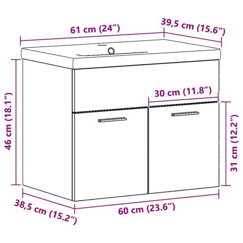 Dieses rechteckige Badezimmermöbelset bringt Stil und Funktion zusammen, damit du deine Utensilien ordentlich halten kannst. Es hat ein modernes Design mit integriertem Waschbecken und viel Stauraum, perfekt für heutige Wohnungen. Die glatte Oberfläche und das matte Finish geben ihm einen schicken, aber unaufdringlichen Look, der für jeden geeignet ist, der ein stilvolles und praktisches Badezimmer will. Da es wandmontiert ist, sparst du Platz auf dem Boden, was es ideal für kleine Badezimmer macht. Egal, ob du ein Familienbad aufpeppen oder einen Gästebereich aufwerten möchtest, dieses Set hat alles, was du brauchst. Material: Hergestellt aus robustem Holzwerkstoff und Keramik, ist dieses Badezimmermöbel für Langlebigkeit ausgelegt. Der stabile Holzrahmen sorgt für Festigkeit und Wasserbeständigkeit, sodass er gut mit Feuchtigkeit umgehen kann. Das keramische Waschbecken bietet einen stylishen Look und kombiniert Funktionalität für den Alltag. Enthaltene Komponenten: Du bekommst einen geräumigen Schrank und ein keramisches Waschbecken, die beide dafür gemacht sind, dir das Leben zu erleichtern. Der Schrank hat viel Platz für alle deine Toilettenartikel und Handtücher, während das Waschbecken einen praktischen Platz zum Waschen bietet und gleichzeitig Platz spart. Merkmale / Funktion / Design: Der Schrank hat ein glattes, mattes Finish, das in modernen Badezimmern toll aussieht. Durch die Wandmontage bleibt der Boden frei, was die Reinigung erleichtert und alles ordentlich hält. Dieses Set ist ganz auf aktuelle Trends ausgelegt und bleibt dabei super praktisch. Empfohlene Verwendung: Perfekt, um das Beste aus deinem Raum herauszuholen, funktioniert dieses Set für Einzelpersonen und Familien gleichzeitig. Es eignet sich gut für kleine Badezimmer oder Gästewaschräume und bietet eine tolle Mischung aus Stil und Stauraum. Das clevere Design passt zu vielen Einrichtungsstilen, sodass es flexibel genug ist, um deinen Bedürfnissen gerecht zu werden. Pflege und Wartung: Um den Schrank sauber zu halten, wisch einfach die Oberflächen mit einem feuchten Tuch ab. Vermeide aggressive Reinigungsmittel, um die schönen Oberflächen zu schützen. Regelmäßiges Abtrocknen von Wasser hilft, Feuchtigkeitsschäden zu verhindern. Ein bisschen Aufmerksamkeit bei der Pflege sorgt dafür, dass das Set auch langfristig stylisch und funktional bleibt. ** Farbe: Altholz ** Material: Holzwerkstoff ** Beenden: Matt ** Gesamtabmessungen: 60 x 38.5 x 46 cm (B x L x H) ** Gewicht: 20.6 kg ** Innen- / außenbereich: Nur für drinnen ** Lieferung: ** 1 Waschtisch, 1 Waschbecken ** Anzahl der elemente: 1 Kinder sollten beaufsichtigt werden, um sicherzustellen, dass sie nicht mit dem Gerät spielen. Halte Kinder vom Montagebereich fern. Achtung! Lies die Anleitung vor dem Gebrauch sorgfältig durch und bewahre sie zum Nachschlagen auf.