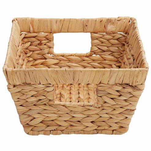 Diese Aufbewahrungskörbe sind eine super praktische und stylische Lösung für dein Zuhause. Im rustikalen Landhausstil passen sie perfekt in jedes Zimmer, egal ob Wohnzimmer, Schlafzimmer oder Büro. Die natürliche, strukturierte Oberfläche gibt einen coolen Look und bleibt dennoch funktional für deine Sachen. Material Wasserhyazinthe: Diese Körbe sind toll aus natürlicher Wasserhyazinthe gemacht. Das Material sieht nicht nur chic aus, sondern hält auch echt viel aus. Damit sind sie perfekt für den langfristigen Gebrauch und machen jeden Raum gemütlicher. Versenkte Zuggriffe: Die flachen Griffe sorgen für ein einheitliches Aussehen und sind mega praktisch beim Verschieben der Körbe in Regalen oder Schränken. So bleibt alles ordentlich und übersichtlich. Leichte Konstruktion: Die Körbe sind echt leicht und einfach zu bewegen. So kannst du dein Zuhause ganz flexibel umgestalten. Und das Beste: Sie bleiben trotzdem stabil und können viel aushalten. Ideal für verschiedene Räume: Egal ob Wohnzimmer, Schlafzimmer oder Büro – diese Körbe sind die perfekte Aufbewahrungslösung. Du kannst sie für Bücher, Technik oder Kleidung benutzen, sie passen sich an deine Bedürfnisse an. Wetterbeständig: Auch wenn sie für drinnen gedacht sind, ist die Oberfläche so gemacht, dass sie den täglichen Belastungen standhält. So sehen die Körbe immer frisch aus und schmücken deinen Raum das ganze Jahr über. ** Farbe: Natur ** Material: Wasserhyazinthe ** Gesamtabmessungen: 38 x 28 x 15 cm (L x B x H) ** Gewicht: 1,5 kg ** Langlebig ** Leichtes Gewicht ** Eingebauter Griff ** Rahmenmaterial: Stahl ** Nur für den Innenbereich ** Lieferumfang: ** 2 x Aufbewahrungskorb