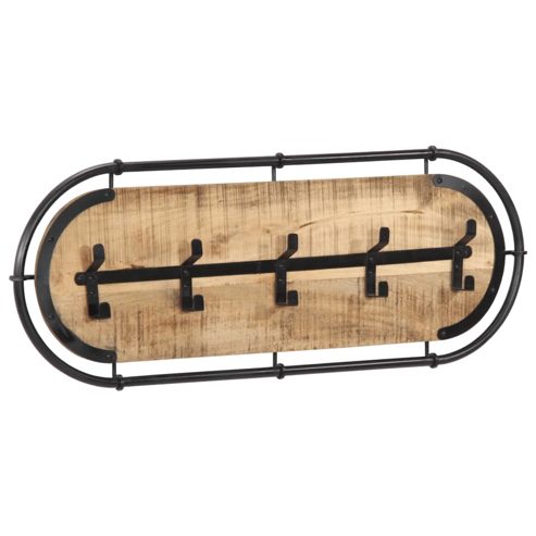vidaXL Wandgarderobe mit 5 Haken Raues Mangoholz