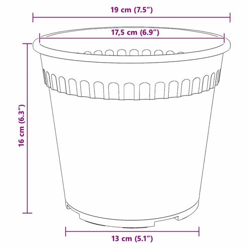 Dieses Set moderner Pflanzgefäße verbindet Eleganz und Charme mit einem minimalistischen Ansatz. Die zylindrische Form macht diese Kunststofftöpfe perfekt, um deinem Raum einen modernen Touch zu geben und Stil mit Funktionalität zu vereinen. Ihr schlankes Design passt zu vielen unterschiedlichen Umgebungen – ideal, um deinem Zuhause, Garten oder Balkon eine Portion Natur zu verleihen. Kunststoffzusammensetzung: Diese robusten und leichten Töpfe bestehen aus hochwertigem Kunststoff und sind eine langlebige Lösung für Pflanzgefäße. Sie halten verschiedenen Wetterbedingungen stand und sehen dabei immer gut aus und bieten deinen Pflanzen ein sicheres Zuhause. Durchdachte Designelemente: Mit den umgeschlagenen Kanten haben diese Töpfe einen modernen Look und eine praktische Handhabung. Das erleichtert das Umstellen, damit deine Pflanzen genügend Sonne bekommen und minimiert das Risiko von Schäden beim Transport. Effizientes Entwässerungssystem: Die Ablauflöcher im Boden verhindern Wasseransammlungen und sorgen für das optimale Wachstum deiner Pflanzen. So bleibt die Feuchtigkeit im idealen Bereich, was besonders wichtig in Außenbereichen ist, die von Regen betroffen sind. Ideal für verschiedene Räume: Diese Töpfe sind vielseitig einsetzbar, egal ob auf dem Balkon oder im Garten. Sie sind perfekt für Stadtbewohner, die ihren Balkon begrünen möchten, oder für Hausbesitzer, die entspannte Garten-Oasen schaffen wollen und dabei ein Gespür für Harmonie zeigen. Einfache Pflege: Die Reinigung der Töpfe erfordert nur wenig Aufwand – einfach abspülen reicht, um Staub oder Schmutz zu beseitigen. So bleiben sie über längere Zeit ansehnlich und pflegeleicht. ** Farbe: Schwarz ** Material: Kunststoff ** Gesamtabmessungen: 19 x 19 x 16 cm (L x B x H) ** Gewicht: 3,43 kg ** Langlebig ** Leichtes Gewicht ** Gerollter Rand ** Entwässerungslöcher am Boden ** Einfach zu reinigen ** Für Innen- und Außenbereich ** Lieferumfang: ** 24 x Pflanzenübertöpfe