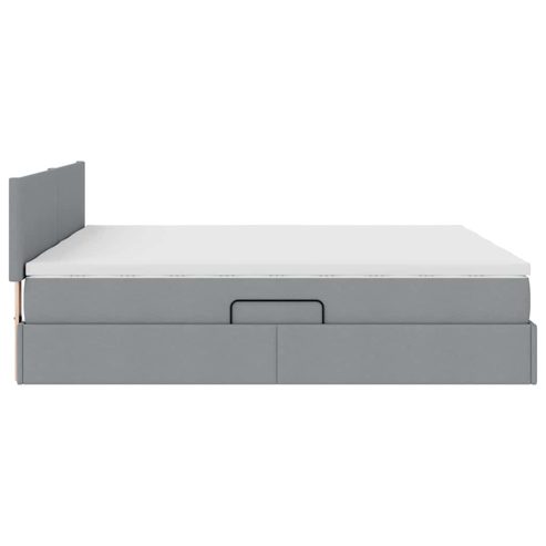 Dieses seitlich offene Stauraumbett vereint stylisches Design mit praktischer Funktionalität und ist ein absolutes Must-Have für jedes moderne Schlafzimmer. Seine schlanke Form und der auffällige schwarze Metallrahmen harmonieren perfekt mit dem coolen Polyester-Kopfteil und schaffen eine einladende Atmosphäre. Egal, ob in einer Stadtwohnung oder einem gemütlichen Zuhause, dieses Bett fügt sich super in verschiedene Einrichtungsstile ein und bietet eine Kombination aus Komfort und Stil für einen entspannten Rückzugsort. Ob du ein Buch liest oder einfach nur chillst – dieses Bett sorgt für eine unterstützende und stilvolle Umgebung. Eleganter Rahmen: Der Metallrahmen hat eine schmale schwarze Beschichtung, die das moderne Design betont. Diese raffinierte Struktur sorgt für Stabilität und Langlebigkeit und passt gut zum Polyester-Kopfteil. Die Schlichtheit des Rahmens macht es einfach, das Bett in verschiedene Schlafzimmerstile zu integrieren. Polyester-Kopfteil: Hergestellt aus hochwertigem Polyester, bringt das Kopfteil einen Hauch von Luxus ins Schlafzimmer. Es ist langlebig und bietet Komfort beim Lesen oder für einen Kaffee im Bett. Das schlichte Design passt perfekt zu jedem Einrichtungsstil. Anpassungsfähige Matratze: Die mittelfeste Matratze bietet eine Balance aus Unterstützung und Komfort und ist für alle Schlafgewohnheiten geeignet. Ihre Schaumfüllung sorgt für eine angenehme Polsterung und fördert erholsamen Schlaf. Die Matratze berücksichtigt verschiedene Schlafhaltungen. Stauraum unter dem Bett: Das hydraulische Hebesystem ermöglicht einen einfachen Zugang zu geräumigem Stauraum unter der Matratze. Ideal für Bettwäsche, saisonale Kleidung oder persönliche Dinge – so wird das Schlafzimmer ordentlich und organisiert, ohne dass der Stil leidet. Beleuchtende LED-Lichter: Ausgestattet mit flexiblen, USB-betriebenen LED-Streifenlichtern bietet das Bett anpassbare Beleuchtung. Diese Lichter sind perfekt für eine stimmungsvolle Atmosphäre, zum Lesen oder als sanfte Nachtbeleuchtung und bringen eine vielseitige Note in dein Schlafzimmer. ** Farbe: Hellgrau ** Material: Stoff ** Gesamtabmessungen: 204 x 200 x 88 cm (L x B x H) ** Sanftes Gefühl ** Stromquelle: USB ** Kabellänge: 170 cm ** Spannung: 5V ** Lichttyp: LED-Streifen ** Rahmenmaterial: Metall ** Füllmaterial: Schaum, Taschenfederkern ** Kopfteilgröße: 200 x 5 x 88 cm (B x T x H) ** mit Matratze ** Matratzenmaterial: Polyester ** Kaiserbett (200 cm x 200 cm oder 79" x 79") ** Max. Gewicht: 200 kg ** Nur für den Innenbereich ** Lieferumfang: ** 2 x Bett (100 x 203 cm) ** 2 x Matratze (100 x 200 cm) ** 1 x Kopfteil ** 1 x LED ** Montage erforderlich: Ja