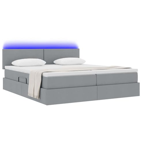 vidaXL Bett mit LED-Lichtleisten Hellgrau 200 x 200 cm Stoff