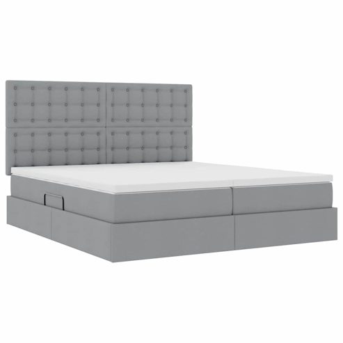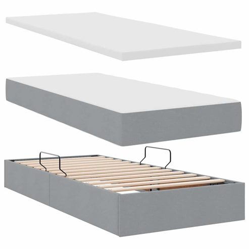 Dieses seitlich offene Speicherbett kombiniert modernes Design mit Funktionalität. Die schlanke Rechteckform und das minimalistische Profil machen es zur perfekten Wahl für moderne Schlafzimmer, und der gepolsterte schwarze Rahmen sorgt für einen eleganten Look. Es richtet sich an alle, die Schönheit und Nützlichkeit schätzen und passt gut in jede Schlafzimmerästhetik, egal ob für Einzelpersonen oder Paare. Polyester-Kopf- und Matratze: Gepolstert mit weichem Polyester, bietet dieses Bett eine einladende Oberfläche, die Komfort und Eleganz vereint. Das Kopfteil und die Matratze sind langlebig konstruiert, um langanhaltenden Genuss zu gewährleisten und das Schlafzimmerstyle zu steigern. LED-Streifenbeleuchtung: Mit flexiblen LED-Streifen ausgestattet, bietet dieses Bett anpassbare Ambientebeleuchtung für eine stilvolle und funktionale Schlafumgebung. Die USB-betriebenen Lichter sind einfach zu verstellen, damit du die perfekte Beleuchtung für deine Stimmung und Bedürfnisse hast. Hydraulisches Stauraumsystem: Der hydraulische Hebemechanismus ermöglicht einfachen Zugang zum geräumigen Stauraum unter dem Bett. Damit ist das Verstauen und Herausnehmen von Sachen ein Kinderspiel, und dein Schlafzimmer bleibt ordentlich und aufgeräumt. Matratze mit mittlerer Festigkeit: Die inklusive Matratze aus Schaumstoff ist mittelfest, sodass sie für verschiedene Schlafpositionen geeignet ist. Dieses ausgewogene Gefühl verbessert die Schlafqualität und bietet genau die richtige Mischung aus Weichheit und Unterstützung. Metall- und Polyesterkonstruktion: Dieses Bett vereint Metall- und Polyester-Materialien und bietet sowohl Stärke als auch stilvolles Design. Der Metallrahmen sorgt für Langlebigkeit, während die Polyester-Bedeckung weich ist und sich gut in moderne Räume einfügt. ** Farbe: Hellgrau ** Material: Stoff ** Gesamtabmessungen: 200 x 203 x 88 cm (L x B x H) ** Gewicht: 29,36 kg ** Langlebig ** Sanftes Gefühl ** Stromquelle: USB ** Lichttyp: LED-Streifen ** Rahmenmaterial: Metall ** Füllmaterial: Schaum ** Kopfteilgröße: 200 x 5 x 88 cm (B x T x H) ** mit Matratze ** Matratzenmaterial: Polyester ** Kaiserbett (200 cm x 200 cm oder 79" x 79") ** Innen- / Außenbereich: Nur für den Innenbereich ** Lieferumfang: ** 2 x Bett (100 x 203 cm) ** 2 x Matratze (100 x 200 cm) ** 1 x Kopfteil ** 1 x LED ** Montage erforderlich: Ja