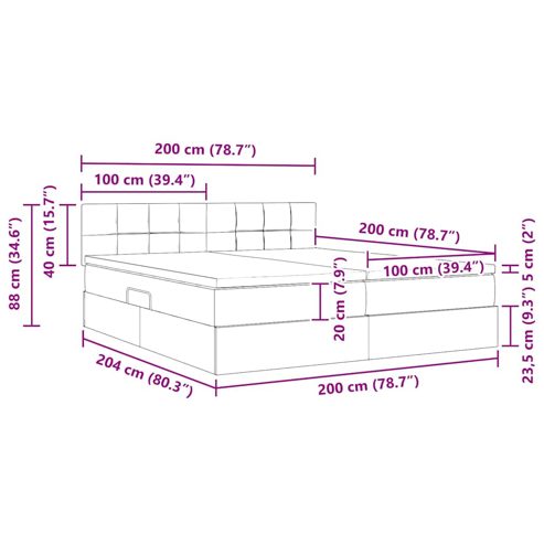 Dieses seitlich offene Stauraumbett vereint stylisches Design mit praktischer Funktionalität und ist ein absolutes Must-Have für jedes moderne Schlafzimmer. Seine schlanke Form und der auffällige schwarze Metallrahmen harmonieren perfekt mit dem coolen Polyester-Kopfteil und schaffen eine einladende Atmosphäre. Egal, ob in einer Stadtwohnung oder einem gemütlichen Zuhause, dieses Bett fügt sich super in verschiedene Einrichtungsstile ein und bietet eine Kombination aus Komfort und Stil für einen entspannten Rückzugsort. Ob du ein Buch liest oder einfach nur chillst – dieses Bett sorgt für eine unterstützende und stilvolle Umgebung. Eleganter Rahmen: Der Metallrahmen hat eine schmale schwarze Beschichtung, die das moderne Design betont. Diese raffinierte Struktur sorgt für Stabilität und Langlebigkeit und passt gut zum Polyester-Kopfteil. Die Schlichtheit des Rahmens macht es einfach, das Bett in verschiedene Schlafzimmerstile zu integrieren. Polyester-Kopfteil: Hergestellt aus hochwertigem Polyester, bringt das Kopfteil einen Hauch von Luxus ins Schlafzimmer. Es ist langlebig und bietet Komfort beim Lesen oder für einen Kaffee im Bett. Das schlichte Design passt perfekt zu jedem Einrichtungsstil. Anpassungsfähige Matratze: Die mittelfeste Matratze bietet eine Balance aus Unterstützung und Komfort und ist für alle Schlafgewohnheiten geeignet. Ihre Schaumfüllung sorgt für eine angenehme Polsterung und fördert erholsamen Schlaf. Die Matratze berücksichtigt verschiedene Schlafhaltungen. Stauraum unter dem Bett: Das hydraulische Hebesystem ermöglicht einen einfachen Zugang zu geräumigem Stauraum unter der Matratze. Ideal für Bettwäsche, saisonale Kleidung oder persönliche Dinge – so wird das Schlafzimmer ordentlich und organisiert, ohne dass der Stil leidet. Beleuchtende LED-Lichter: Ausgestattet mit flexiblen, USB-betriebenen LED-Streifenlichtern bietet das Bett anpassbare Beleuchtung. Diese Lichter sind perfekt für eine stimmungsvolle Atmosphäre, zum Lesen oder als sanfte Nachtbeleuchtung und bringen eine vielseitige Note in dein Schlafzimmer. ** Farbe: Dunkelgrau ** Material: Stoff ** Gesamtabmessungen: 204 x 200 x 88 cm (L x B x H) ** Sanftes Gefühl ** Stromquelle: USB ** Kabellänge: 170 cm ** Spannung: 5V ** Lichttyp: LED-Streifen ** Rahmenmaterial: Metall ** Füllmaterial: Schaum, Taschenfederkern ** Kopfteilgröße: 200 x 5 x 88 cm (B x T x H) ** mit Matratze ** Matratzenmaterial: Polyester ** Kaiserbett (200 cm x 200 cm oder 79" x 79") ** Max. Gewicht: 200 kg ** Nur für den Innenbereich ** Lieferumfang: ** 2 x Bett (100 x 203 cm) ** 2 x Matratze (100 x 200 cm) ** 1 x Kopfteil ** 1 x LED ** Montage erforderlich: Ja
