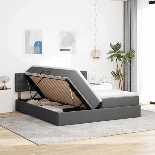 Dieses seitlich offene Stauraumbett vereint stylisches Design mit praktischer Funktionalität und ist ein absolutes Must-Have für jedes moderne Schlafzimmer. Seine schlanke Form und der auffällige schwarze Metallrahmen harmonieren perfekt mit dem coolen Polyester-Kopfteil und schaffen eine einladende Atmosphäre. Egal, ob in einer Stadtwohnung oder einem gemütlichen Zuhause, dieses Bett fügt sich super in verschiedene Einrichtungsstile ein und bietet eine Kombination aus Komfort und Stil für einen entspannten Rückzugsort. Ob du ein Buch liest oder einfach nur chillst – dieses Bett sorgt für eine unterstützende und stilvolle Umgebung. Eleganter Rahmen: Der Metallrahmen hat eine schmale schwarze Beschichtung, die das moderne Design betont. Diese raffinierte Struktur sorgt für Stabilität und Langlebigkeit und passt gut zum Polyester-Kopfteil. Die Schlichtheit des Rahmens macht es einfach, das Bett in verschiedene Schlafzimmerstile zu integrieren. Polyester-Kopfteil: Hergestellt aus hochwertigem Polyester, bringt das Kopfteil einen Hauch von Luxus ins Schlafzimmer. Es ist langlebig und bietet Komfort beim Lesen oder für einen Kaffee im Bett. Das schlichte Design passt perfekt zu jedem Einrichtungsstil. Anpassungsfähige Matratze: Die mittelfeste Matratze bietet eine Balance aus Unterstützung und Komfort und ist für alle Schlafgewohnheiten geeignet. Ihre Schaumfüllung sorgt für eine angenehme Polsterung und fördert erholsamen Schlaf. Die Matratze berücksichtigt verschiedene Schlafhaltungen. Stauraum unter dem Bett: Das hydraulische Hebesystem ermöglicht einen einfachen Zugang zu geräumigem Stauraum unter der Matratze. Ideal für Bettwäsche, saisonale Kleidung oder persönliche Dinge – so wird das Schlafzimmer ordentlich und organisiert, ohne dass der Stil leidet. Beleuchtende LED-Lichter: Ausgestattet mit flexiblen, USB-betriebenen LED-Streifenlichtern bietet das Bett anpassbare Beleuchtung. Diese Lichter sind perfekt für eine stimmungsvolle Atmosphäre, zum Lesen oder als sanfte Nachtbeleuchtung und bringen eine vielseitige Note in dein Schlafzimmer. ** Farbe: Dunkelgrau ** Material: Stoff ** Gesamtabmessungen: 204 x 200 x 88 cm (L x B x H) ** Sanftes Gefühl ** Stromquelle: USB ** Kabellänge: 170 cm ** Spannung: 5V ** Lichttyp: LED-Streifen ** Rahmenmaterial: Metall ** Füllmaterial: Schaum, Taschenfederkern ** Kopfteilgröße: 200 x 5 x 88 cm (B x T x H) ** mit Matratze ** Matratzenmaterial: Polyester ** Kaiserbett (200 cm x 200 cm oder 79" x 79") ** Max. Gewicht: 200 kg ** Nur für den Innenbereich ** Lieferumfang: ** 2 x Bett (100 x 203 cm) ** 2 x Matratze (100 x 200 cm) ** 1 x Kopfteil ** 1 x LED ** Montage erforderlich: Ja