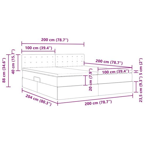 Dieses seitlich offene Stauraumbett vereint stylisches Design mit praktischer Funktionalität und ist ein absolutes Must-Have für jedes moderne Schlafzimmer. Seine schlanke Form und der auffällige schwarze Metallrahmen harmonieren perfekt mit dem coolen Polyester-Kopfteil und schaffen eine einladende Atmosphäre. Egal, ob in einer Stadtwohnung oder einem gemütlichen Zuhause, dieses Bett fügt sich super in verschiedene Einrichtungsstile ein und bietet eine Kombination aus Komfort und Stil für einen entspannten Rückzugsort. Ob du ein Buch liest oder einfach nur chillst – dieses Bett sorgt für eine unterstützende und stilvolle Umgebung. Eleganter Rahmen: Der Metallrahmen hat eine schmale schwarze Beschichtung, die das moderne Design betont. Diese raffinierte Struktur sorgt für Stabilität und Langlebigkeit und passt gut zum Polyester-Kopfteil. Die Schlichtheit des Rahmens macht es einfach, das Bett in verschiedene Schlafzimmerstile zu integrieren. Polyester-Kopfteil: Hergestellt aus hochwertigem Polyester, bringt das Kopfteil einen Hauch von Luxus ins Schlafzimmer. Es ist langlebig und bietet Komfort beim Lesen oder für einen Kaffee im Bett. Das schlichte Design passt perfekt zu jedem Einrichtungsstil. Anpassungsfähige Matratze: Die mittelfeste Matratze bietet eine Balance aus Unterstützung und Komfort und ist für alle Schlafgewohnheiten geeignet. Ihre Schaumfüllung sorgt für eine angenehme Polsterung und fördert erholsamen Schlaf. Die Matratze berücksichtigt verschiedene Schlafhaltungen. Stauraum unter dem Bett: Das hydraulische Hebesystem ermöglicht einen einfachen Zugang zu geräumigem Stauraum unter der Matratze. Ideal für Bettwäsche, saisonale Kleidung oder persönliche Dinge – so wird das Schlafzimmer ordentlich und organisiert, ohne dass der Stil leidet. Beleuchtende LED-Lichter: Ausgestattet mit flexiblen, USB-betriebenen LED-Streifenlichtern bietet das Bett anpassbare Beleuchtung. Diese Lichter sind perfekt für eine stimmungsvolle Atmosphäre, zum Lesen oder als sanfte Nachtbeleuchtung und bringen eine vielseitige Note in dein Schlafzimmer. ** Farbe: Taupe ** Material: Stoff ** Gesamtabmessungen: 204 x 200 x 88 cm (L x B x H) ** Sanftes Gefühl ** Stromquelle: USB ** Kabellänge: 170 cm ** Spannung: 5V ** Lichttyp: LED-Streifen ** Rahmenmaterial: Metall ** Füllmaterial: Schaum, Taschenfederkern ** Kopfteilgröße: 200 x 5 x 88 cm (B x T x H) ** mit Matratze ** Matratzenmaterial: Polyester ** Kaiserbett (200 cm x 200 cm oder 79" x 79") ** Max. Gewicht: 200 kg ** Nur für den Innenbereich ** Lieferumfang: ** 2 x Bett (100 x 203 cm) ** 2 x Matratze (100 x 200 cm) ** 1 x Kopfteil ** 1 x LED ** Montage erforderlich: Ja