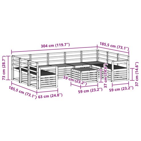 Das Gartenmöbel-Set verbindet stylisches Design mit nützlicher Funktionalität - ein echtes Highlight für jeden Garten oder jede Terrasse. Mit klaren Linien und einem modernen Look wirkt es elegant und unterstützt gemütliche Stunden im Freien und fröhliche Treffen mit Freunden. Das starke Akazienholz sorgt für Langlebigkeit und sieht dabei immer gut aus. Es ist die perfekte Wahl für alle, die praktische und stilvolle Möbel für ihren Garten suchen. Langlebiges Akazienholz: Aus solidem Akazienholz gefertigt, ist dieses Gartenmöbelset bekannt für seine Robustheit und Widerstandsfähigkeit gegen Witterungseinflüsse. Die stabile Konstruktion sorgt für zuverlässige Unterstützung und bleibt lange stabil, während die warme Holzfarbe jeden Garten oder jede Terrasse aufwertet. Wetterfestes Design: Mit einer lackierten Oberfläche kommt dieses Gartenmöbelset mit einem zusätzlichen Schutz gegen Sonne, leichten Regen und andere Wettereinflüsse. Das polierte Finish hilft, das Aussehen und die Funktionalität lange zu erhalten, sodass das Set über die Jahre in Garten, auf der Terrasse oder im Hinterhof wasserfest bleibt. Stilvolles Design: Jedes Element, ob Armlehne oder Rückenlehne, ist mit einem Blick auf Stil und Funktionalität gestaltet. Unterstützende Merkmale sorgen für mehr Komfort, während das zusammenpassende Design ein harmonisches Gesamtbild für vielfältige Outdoor-Anlässe schafft. Komfort und Flexibilität: Das modulare Design erlaubt es Ihnen, die Möbel in unterschiedlichen Anordnungen zu nutzen, die auf verschiedene Räume und Bedürfnisse zugeschnitten sind. Egal ob entspannen, feiern oder mal in Ruhe lesen – das Set passt sich jeder Außenumgebung perfekt an und maximiert den Komfort. Einfache Pflege: Damit die Möbel gut in Schuss bleiben, genügt es, die Oberfläche mit einem feuchten Tuch abzuwischen und scharfe Reinigungsmittel zu vermeiden. Mit ein wenig regelmäßiger Pflege bleibt die Optik toll und die Lebensdauer der Möbel verlängert sich. ** Farbe: Natur ** Material: Massivholz Akazie ** Gesamtabmessungen: 59 x 59 x 37 cm (L x B x H) ** Gewicht: 50,2 kg ** Langlebig ** Einfach zu pflegen ** Latten-Design ** Naturholzstruktur ** Armlehnenhöhe vom Sitz aus: 24 cm ** Max. Gewicht: 110 kg pro Sitz ** Nur für den Außenbereich ** Lieferumfang: ** 1 x Tisch: 59 x 59 x 37 cm (L x B x H) ** 2 x Ecksofa: 63 x 63 x 73 cm (L x B x H) ** 7 x Mittelsitz: 63 x 59 x 73 cm (L x B x H) ** 2 x Armlehne: 59 x 6 x 61 cm (L x B x H) ** Montage erforderlich: Ja