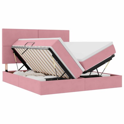 vidaXL Bett mit LED-Lichtleisten mit Kopfteil Rosa 200 x 200 cm Samt