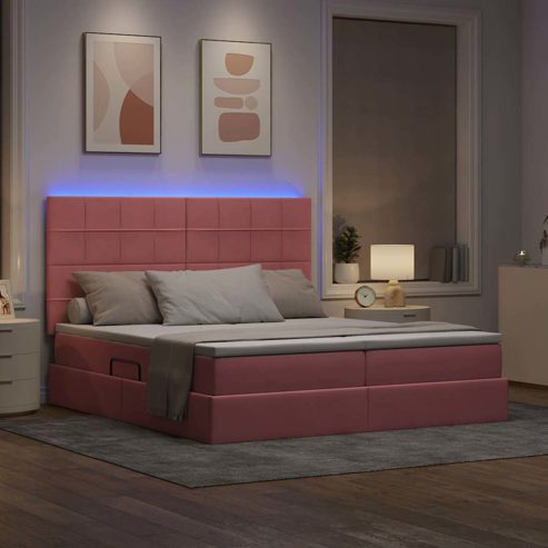 vidaXL Bett mit LED-Lichtleisten mit Kopfteil Rosa 200 x 200 cm Samt