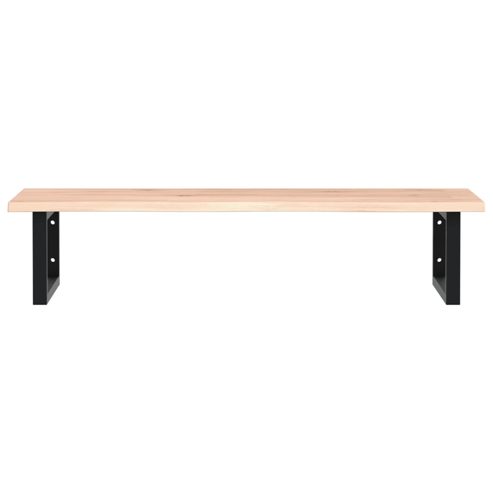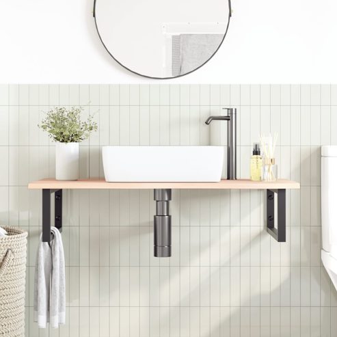 Das Regal lässt sich sicher an der Wand befestigen und bietet eine elegante und platzsparende Lösung für dein Badezimmer. Robust und langlebig: Diese Waschtisch-Platte hat Stahlhalterungen und eine Eichenholz-Platte, wodurch sie robust, stabil und langlebig ist.Platzsparend: Das Schweberegal bietet reichlich Platz für Cremes und verschiedene Kleinigkeiten. Dank der rechteckigen Form der Halterungen kannst du auch Handtücher oder andere Sachen darauf platzsparend aufhängen.Einfache Verwendung: Die Holzplatte ist nicht vorgebohrt, sodass dein Waschbecken je nach Bedarf links, rechts oder in der Mitte angebracht werden kann. Dank der vorgebohrten Löcher in der Halterung lässt sich die Ablage am Waschtisch oder an der Wand mühelos befestigen.Vielseitig einsetzbar: Dank ihres modernen Designs schafft die Ablage zusätzlichen Stauraum und fügt sich harmonisch in die unterschiedlichsten Einrichtungen ein. Gut zu wissen:Die Schrauben sind nicht im Lieferumfang enthalten. Du kannst die Schrauben anhand von den folgenden Informationen separat erwerben.Wandbefestigung: 2 x M8-Dehnschraube pro HalterungHolzplatte: 2 x M5x18-Schraube (T=2) oder 2 x M5x20-Schraube (T=2,5/4 cm) pro HalterungAls Naturprodukt kann Holz Aststellen und Unebenheiten aufweisen, die wir mit schwarzer Füllung ausfüllen, um ein glattes Aussehen zu gewährleisten. ** Oberplatte: ** Material: Massives Eichenholz (unbehandelt) ** Abmessungen: 100 x 50 x 2 cm (L x B x T) ** Halterung: ** Farbe: Schwarz ** Material: Stahl ** Größe der Halterung: 20 x 45 cm (B x L) ** Rohrgröße: 3 x 3 cm (B x L) ** Form: Rechteckig ** Belastbarkeit: 100 kg ** Abstand der Wandbefestigungslöcher: 60 mm ** Der Abstand zwischen Tischplattenbohrung und Tischkante beträgt 60 mm zu jeder Seite ** Mit 2 Löchern für die Wandmontage und 2 Löchern für die Tischmontage ** Schrauben sind nicht im Lieferumfang enthalten ** Zusammenbau erforderlich: Ja ** Lieferung umfasst: ** 1 x Tischplatte ** 2 x Halterungen für Waschtische