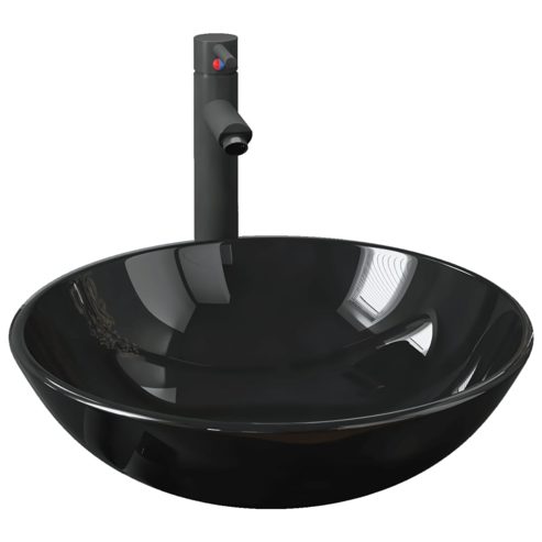 vidaXL Badezimmer Waschbecken mit Wasserhahn Ablaufgarnitur Schwarz