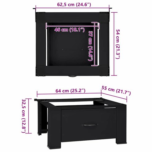 vidaXL Waschmaschinen-Podest Schwarz 64 x 55 x 32,5 cm Stahl