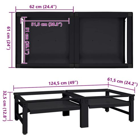 vidaXL Waschmaschinen-Podest 2 pcs Schwarz 64 x 55 x 32,5 cm Stahl