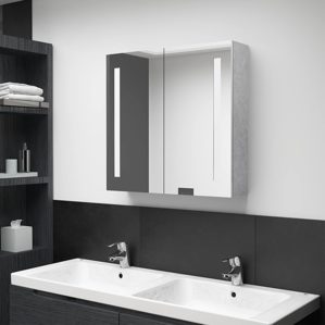 vidaXL LED-Bad-Spiegelschrank Betongrau 62x14x60 cm
