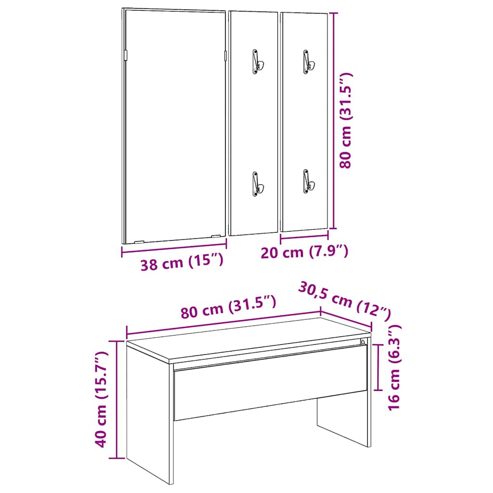 Schaffe eine warme und einladende Atmosphäre direkt neben deiner Tür mit diesem Flurmöbel-Set! Robustes Material: Holzwerkstoff ist ein Material von außergewöhnlicher Qualität mit glatter Oberfläche, das sich durch Festigkeit, Stabilität und Feuchtigkeitsbeständigkeit auszeichnet.Reichlich Stauraum: Die Flurbank mit Schublade bietet reichlich Stauraum für Schuhe oder andere Utensilien.Multifunktionale Bank: Die Bank bietet Stauraum und Platz, um Dekoartikel in deinem Wohnraum zur Schau zu stellen, kann aber auch als Sitzgelegenheit beim An- und Ausziehen der Schuhe dienen.Praktisches Design: Die Kleiderhaken bieten Platz zum Aufhängen deiner Kleidung. Dabei kannst du auch einen Blick in den Spiegel werfen. Gut zu wissen:Schrauben und Dübel für die Wandbefestigung sind nicht enthalten. Suchen und verwenden Sie die für Ihre Wände geeigneten Schrauben und Dübel. Wenn Sie unsicher sind, suchen Sie professionelle Hilfe. Lesen und befolgen Sie jeden Schritt der Anleitung sorgfältig. ** Farbe: Artisan-Eiche ** Material: Holzwerkstoff, Acryl ** Abmessungen der Bank: 80 x 30,5 x 40 cm (B x T x H) ** Spiegelgröße: 39 x 80 cm (B x H) ** Größe des Garderobe: 20 x 80 cm (B x H) ** Maximale Tragfähigkeit (pro Sitz ): 110 kg ** Zusammenbau erforderlich: Ja ** Lieferung umfasst: ** 1 x Flurbank ** 1 x Spiegel ** 2 x Garderobe Maximal 110 kg pro Sitzplatz.