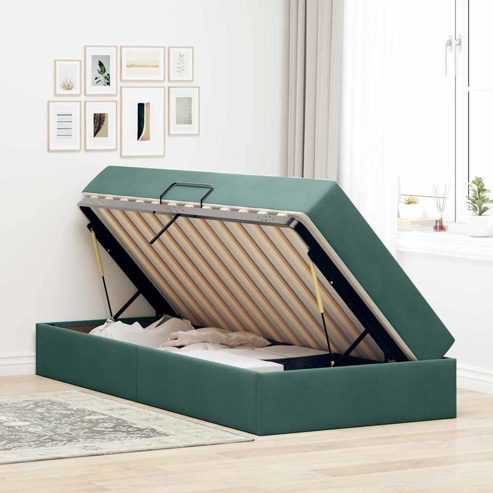 vidaXL Aufbewahrungsbett mit Matratze Dunkelgrün 100 x 200 cm Samt