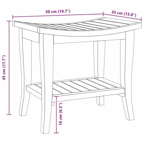 Dieser Beistelltisch aus Holz ist die perfekte Wahl für die Aufbewahrung von Handtüchern und Badzubehör im Badezimmer. Teak-Massivholz: Massives Teakholz ist ein wunderschönes Naturmaterial. Das Holz wurde abgelagert, kammergetrocknet und anschließend mit einer rustikalen Lasur behandelt. Teakholz wird für seine außergewöhnliche Festigkeit und Witterungsbeständigkeit geschätzt.Ablagefläche: Der Beistelltisch aus Teakholz ist bis zu 10 kg belastbar und eignet sich ideal zum Aufbewahren deiner Badutensilien wie Badetücher, Seife, Shampoos, Lotionen, Duschgel oder Duftkerzen. Zum Sitzen ist es überhaupt nicht geeignet.Leicht zu reinigende Oberfläche: Durch die glatte Oberfläche lässt sich der Bad-Tisch leicht mit einem feuchten Tuch reinigen. ** Material: Teak-Massivholz ** Abmessungen: 50 x 35 x 45 cm (B x T x H) ** Zusammenbau erforderlich: Ja