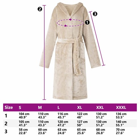 Der Bathrobe Hoodie ist aus luxuriösem Flanell gemacht und verbindet Komfort mit Praktikabilität, perfekt für die kalten Wintermonate. Sein weiches Material und durchdachte Details wie die extra-warme Kapuze und praktische Tasche machen ihn ideal für drinnen. Mit seinem warmen, einladenden Look lädt der Bademantel dazu ein, sich hineinzukuscheln und bietet einen gemütlichen Rückzugsort nach langen Tagen oder kalten Nächten. Weiches Material Der Bademantel ist aus hochwertigem Flanell, bekannt für seine samtweiche Oberfläche und das angenehme Gefühl auf der Haut. Die isolierenden Eigenschaften halten dich warm und sorgen gleichzeitig für Atmungsaktivität. Du wirst die Gemütlichkeit von entspannten Abenden genießen. Außerdem macht die natürliche Faltenresistenz von Flanell, dass du immer gut aussiehst. Praktische Tasche Eine strategisch platzierte Tasche bietet genug Platz für kleine Dinge, was das Entspannen noch einfacher macht. Diese Tasche ist für einen schnellen Zugriff gedacht und kann alles von Handys bis zu Fernbedienungen aufnehmen. Damit hast du deine Essentials immer griffbereit, ohne den Komfort zu verlieren. Extra-warme Kapuze Die große Kapuze schützt vor Zugluft und sorgt für jede Menge Behaglichkeit. Ideal zum Entspannen nach einem langen Tag, macht sie alles noch gemütlicher und ermöglicht dir, Indoor-Aktivitäten bei Kälte voll auszukosten. Das Kapuzendesign passt super ins Gesamtbild und sieht dazu auch noch gut aus. Tragbar und leicht Das tragbare Design sorgt dafür, dass du problemlos von einem Raum zum anderen gehen kannst. Mit seinem leichten Gewicht ist der Bathrobe Hoodie bequem und perfekt für Reisen oder spontane Übernachtungen. So kannst du überall Wärme und Komfort genießen, ohne dich schwerfällig zu fühlen. Pflegehinweise Die Pflege des Bathrobe Hoodies ist einfach und es sind nur klare Anweisungen zu beachten. Vermeide scharfe Chemikalien, damit die Fasern nicht beschädigt werden. Dank einfacher Pflege bleibt die luxuriöse Weichheit erhalten. Ein unkomplizierter Pflegeprozess sorgt dafür, dass du diesen Hoodie gerne trägst, und macht ihn zu einer zuverlässigen Wahl für die kälteren Monate. ** Farbe: Beige ** Material: Flanell ** Gesamtabmessungen: 105 x 104 cm (L x B) ** Gewicht: 0,64 kg ** Leichtes Gewicht ** Tragbar ** Langlebig ** Praktische Taschen ** Extra-warmer Kapuze ** Einfache Pflege ** Innen- / Außenbereich: Nur für den Innenbereich ** Lieferumfang: ** 1 x Bademantel Hoodie