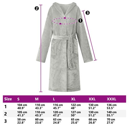 Der Bathrobe Hoodie ist aus luxuriösem Flanell gemacht und verbindet Komfort mit Praktikabilität, perfekt für die kalten Wintermonate. Sein weiches Material und durchdachte Details wie die extra-warme Kapuze und praktische Tasche machen ihn ideal für drinnen. Mit seinem warmen, einladenden Look lädt der Bademantel dazu ein, sich hineinzukuscheln und bietet einen gemütlichen Rückzugsort nach langen Tagen oder kalten Nächten. Weiches Material Der Bademantel ist aus hochwertigem Flanell, bekannt für seine samtweiche Oberfläche und das angenehme Gefühl auf der Haut. Die isolierenden Eigenschaften halten dich warm und sorgen gleichzeitig für Atmungsaktivität. Du wirst die Gemütlichkeit von entspannten Abenden genießen. Außerdem macht die natürliche Faltenresistenz von Flanell, dass du immer gut aussiehst. Praktische Tasche Eine strategisch platzierte Tasche bietet genug Platz für kleine Dinge, was das Entspannen noch einfacher macht. Diese Tasche ist für einen schnellen Zugriff gedacht und kann alles von Handys bis zu Fernbedienungen aufnehmen. Damit hast du deine Essentials immer griffbereit, ohne den Komfort zu verlieren. Extra-warme Kapuze Die große Kapuze schützt vor Zugluft und sorgt für jede Menge Behaglichkeit. Ideal zum Entspannen nach einem langen Tag, macht sie alles noch gemütlicher und ermöglicht dir, Indoor-Aktivitäten bei Kälte voll auszukosten. Das Kapuzendesign passt super ins Gesamtbild und sieht dazu auch noch gut aus. Tragbar und leicht Das tragbare Design sorgt dafür, dass du problemlos von einem Raum zum anderen gehen kannst. Mit seinem leichten Gewicht ist der Bathrobe Hoodie bequem und perfekt für Reisen oder spontane Übernachtungen. So kannst du überall Wärme und Komfort genießen, ohne dich schwerfällig zu fühlen. Pflegehinweise Die Pflege des Bathrobe Hoodies ist einfach und es sind nur klare Anweisungen zu beachten. Vermeide scharfe Chemikalien, damit die Fasern nicht beschädigt werden. Dank einfacher Pflege bleibt die luxuriöse Weichheit erhalten. Ein unkomplizierter Pflegeprozess sorgt dafür, dass du diesen Hoodie gerne trägst, und macht ihn zu einer zuverlässigen Wahl für die kälteren Monate. ** Farbe: Grau ** Material: Flanell ** Gesamtabmessungen: 105 x 104 cm (L x B) ** Gewicht: 0,61 kg ** Leichtes Gewicht ** Tragbar ** Langlebig ** Praktische Taschen ** Extra-warmer Kapuze ** Einfache Pflege ** Innen- / Außenbereich: Nur für den Innenbereich ** Lieferumfang: ** 1 x Bademantel Hoodie