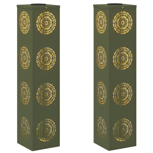vidaXL Solar LED Weg Licht 2 pcs Olive Grün Kalt gewalzter Stahl