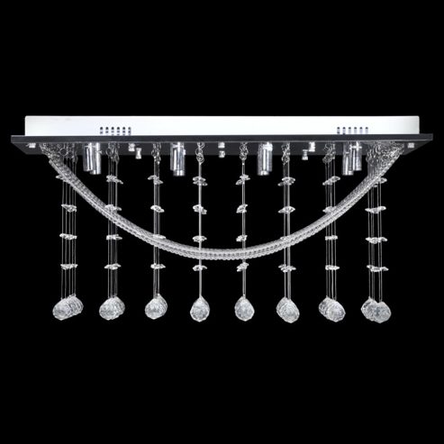 Diese prachtvolle und imposante Deckenlampe mit hochwertigen glitzernden Kristalldekorationen eignet sich ideal für die Nutzung in Ihrem privaten Wohnraum oder auf Geschäftsflächen. Diese moderne Deckenlampe wird ein einzigartiger Blickfang und eine große Bereicherung für jede Einrichtung sein. Die glänzenden Glaskristalle sind äußerst lichtdurchlässig und reflektieren das Licht sehr effektiv, wodurch ein herrliches Farbenspiel über das gesamte Spektrum entsteht. Mit dieser stylischen Lampe fügen Sie einen Hauch von Luxus zu Ihrem Einrichtungsstil hinzu. Der Lampenrahmen ist aus hochwertigem Metall gefertigt. Die Lampe kann einfach an der Decke montiert werden. Der Lieferumfang umfasst 1 x Deckenlampe. ** Spannung: 220 V ** Lampenmaße: 70 x 25 x 29 (L x B x H) ** Lapmenfassung : 8 x G9 ** Max. Leistung: 40 W ** Material: Metallrahmen + Kristallperlen ** Farbe: Weiß ** Finish: Chrom ** Lieferumfang umfasst 1 x Lampe (Leuchtmittel sind nicht im Lieferumfang enthalten) Dieses Gerät ist nicht dafür bestimmt, von Personen (einschließlich Kindern) mit eingeschränkten physischen, sensorischen oder geistigen Fähigkeiten oder mangelnder Erfahrung und mangelndem Wissen benutzt zu werden, es sei denn, sie werden von einer für ihre Sicherheit verantwortlichen Person beaufsichtigt oder in der Benutzung des Geräts unterwiesen. Dieses Produkt ist kein Spielzeug. Erlaube Kindern nicht, mit dem Gerät zu spielen.
