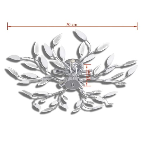 Diese tolle Deckenlampe, mit dekorativen Acryl-Blättern wird ein echter Blickfang in Ihren Innenräumen sein! Der Metall-Look verleiht dieser Leuchte einen modernen Stil. Diese Lampe kann problemlos an jede Decke montiert werden. Das Licht wird an den feinen Acryl-Blättern reflektiert und beleuchtet jeden Winkel des Raumes auf einzigartige Weise. Diese Lampe ist für fünf E14 Leuchtmittel ausgelegt. Bitte beachten Sie, dass die Leuchtmittel nicht im Lieferumfang enthalten sind. ** Material: Metallrahmen + Acryl-Blätter ** Farbe: transparent + weiß ** Gesamtgröße: 70 x 15 cm (Φ x H) ** Spannung: 220 V ** Max. Leistung: 5 x 40 W ** Leuchtmittel: E14 ** Chrom Überzug ** Leuchtmittel sind nicht im Lieferumfang enthalten ** Die Montage ist sehr einfach Dieses Gerät ist nicht dafür bestimmt, von Personen (einschließlich Kindern) mit eingeschränkten physischen, sensorischen oder geistigen Fähigkeiten oder mangelnder Erfahrung und mangelndem Wissen benutzt zu werden, es sei denn, sie werden von einer für ihre Sicherheit verantwortlichen Person beaufsichtigt oder in der Benutzung des Geräts unterwiesen. Dieses Produkt ist kein Spielzeug. Erlaube Kindern nicht, mit dem Gerät zu spielen.