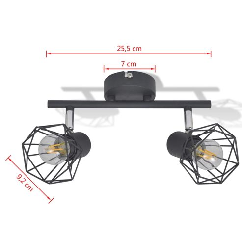 vidaXL Deckenstrahler mit 2 LED-Glühlampen Industrie-Stil Drahtschirm