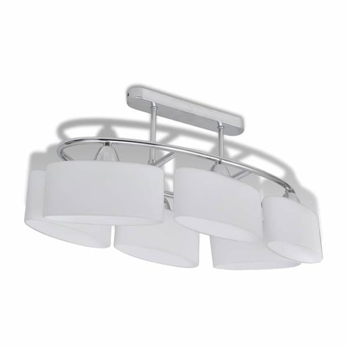 Diese einzigartige Deckenlampe mit sechs Glasschirmen verfügt über ein modernes Design. Das Chromfinish verleiht dieser Leuchte einen zeitgemäßen Stil - perfekt für jedes Wohn- oder Schlafzimmer. Diese Lampe kann einfach an jeder Decke mit einem hochwertigen quaderförmigen Metallfuß montiert werden. Wunderbares Licht kommt durch die zarten, ellipsenförmigen Schirme, die jede Ecke des Raumes erhellen. Diese exklusive Deckenleuchte zeichnet sich garantiert durch ihre angenehme Schlichtheit aus. Diese Lampe ist für sechs E14-Glühlampen geeignet. Bitte beachten Sie, dass die Glühbirnen nicht im Lieferumfang enthalten sind. Lieferung inklusive 2 Lampen. ** Material: Metallrahmen + Glas-Lampenschirme ** Gesamtgröße: 550 x 250 x 275 mm (L x B x H) ** Spannung: 230 V~ ** Frequenz: 50 Hz ** Max. Leistung: 6 x 40 W ** Lampenfassung: E14 ** Verchromt ** Leuchtmittel sind nicht im Lieferumfang enthalten ** Lieferung umfasst 2 Lampen Dieses Gerät kann von Kindern ab 8 Jahren und Personen mit eingeschränkten körperlichen, sensorischen oder geistigen Fähigkeiten oder mangelnder Erfahrung und Kenntnis verwendet werden, wenn sie beaufsichtigt werden oder eine Einweisung in die sichere Verwendung des Geräts erhalten haben und die damit verbundenen Gefahren verstehen. Kinder dürfen nicht mit dem Gerät spielen. Die Reinigung und Wartung durch den Benutzer darf nicht von Kindern ohne Aufsicht durchgeführt werden.
