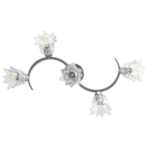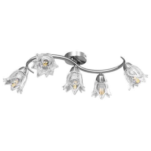 Diese exklusive Deckenleuchte zeichnet sich durch ihre elegante Schlichtheit aus. Diese Lampe kann mit dem robusten Metallsockel problemlos an jeder Decke montiert werden. Die fünf verwobenen verchromten Stahlrohre und die transparenten Tulpenlampenschirme aus Glas vervollständigen ihr elegantes Erscheinungsbild. Die satinierte Chromoberfläche verleiht dieser Lampe einen zeitgemäßen Stil, wodurch sie sich perfekt für Wohn- und Schlafzimmer eignet. Sie ist außerdem leicht zu warten und mit einem feuchten Tuch zu reinigen. Diese Lampe lässt sich einfach montieren. ** Material: Verchromter Stahl, transparentes Glas ** Gesamtabmessung: 64 x 36 x 17 cm (L x B x H) ** Lampenschirm-Durchmesser: 10 cm ** Spannung: 220 - 240 V ~ ** Frequenz: 50 Hz ** Max. Leistung: 5 × 40 W ** Lampenfassung: E14 ** Mit 5 tulpenförmigen Lampenschirmen ** Design mit verwobenen Lampenrohren ** Zusammenbau erforderlich: Ja ** Hinweis: Leuchtmittel sind nicht im Lieferumfang enthalten Dieses Gerät ist nicht dafür bestimmt, von Personen (einschließlich Kindern) mit eingeschränkten physischen, sensorischen oder geistigen Fähigkeiten oder mangelnder Erfahrung und mangelndem Wissen benutzt zu werden, es sei denn, sie werden von einer für ihre Sicherheit verantwortlichen Person beaufsichtigt oder in der Benutzung des Geräts unterwiesen. Dieses Produkt ist kein Spielzeug. Erlaube Kindern nicht, mit dem Gerät zu spielen.