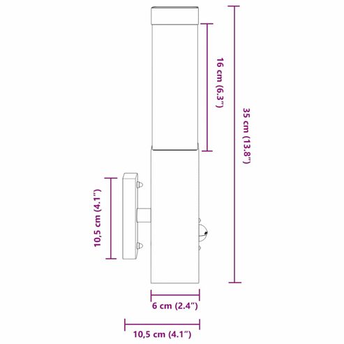 vidaXL Außenwandlampen 2 pcs Silber 10.5 x 6 x 35 cm Edelstahl