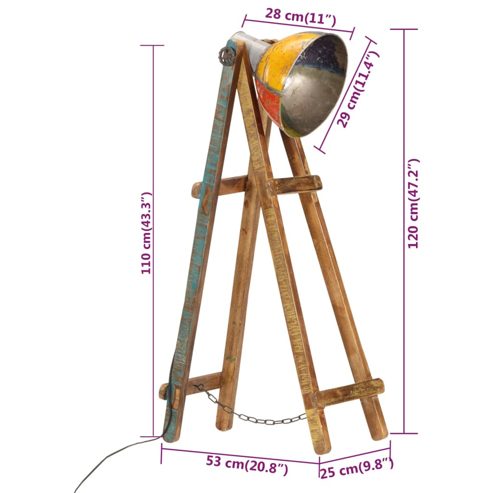 Beleuchte deinen Wohnbereich mit dieser Stehlampe aus Holz! Mit ihrem Vintage-Design ist diese Lampe ein trendiger Blickfang in jedem Interieur. Gestell aus massivem Mangoholz: Das Gestell der Stehlampe besteht aus massivem Mangoholz. Massives Mangoholz ist ein starkes, tropisches Hartholz, aus dem sich robuste Möbelstücke herstellen lassen. Die optisch ansprechende Holzmaserung macht jedes Möbelstück zu einem Unikat.Verstellbarer Lampenschirm: Der Lampenschirm ist winkelverstellbar, um verschiedenen Bedürfnissen gerecht zu werden.E27-Fassung: Die Stehleuchte verfügt über eine E27-Fassung für eine Glühbirne von maximal 25 W. Du kannst E27-Glühbirnen mit unterschiedlichen Lichtfarben auswählen und anbringen, um eine Atmosphäre der Entspannung und Ruhe zu schaffen.Industrie-Stil: Mit ihrer gemischten Farbgebung und ihrem Gestell aus massivem Mangoholz passt diese Eckleuchte aus Eisen perfekt in ein Interieur im Landhaus- oder Industrie-Stil. Gut zu wissen:Diese Stehlampe im Industrie-Stil weist verschiedene Unvollkommenheiten und eine raue Optik auf, die ihr einen einzigartigen Charakter verleihen und sie zum Unikat machen.Das Leuchtmittel ist nicht im Lieferumfang enthalten. ** Farbe: Mehrfarbig ** Material: Massives Mangoholz mit gemischter Farbgebung, Eisen ** Gesamtabmessungen: 25 x 53 x 120 cm (L x B x H) ** Durchmesser des Lampenschirms: 29 cm ** Lampenfassung: E27 ** Maximale Leistung: 25 W ** Beinhaltet den Bodenschalter ** Niederspannungsrichtlinie ** Leuchtmittel ist nicht im Lieferumfang enthalten ** Zusammenbau erforderlich: Ja Dieses Gerät ist nicht dafür bestimmt, von Personen (einschließlich Kindern) mit eingeschränkten physischen, sensorischen oder geistigen Fähigkeiten oder mangelnder Erfahrung und mangelndem Wissen benutzt zu werden, es sei denn, sie werden von einer für ihre Sicherheit verantwortlichen Person beaufsichtigt oder in der Benutzung des Geräts unterwiesen. Dieses Produkt ist kein Spielzeug. Erlaube Kindern nicht, mit dem Gerät zu spielen.