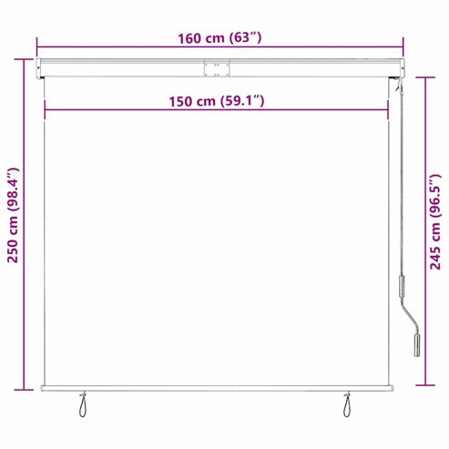 Suchen Sie nach einem Außenrollo für Ihren Balkon, Garten oder Ihre Terrasse? Dieses handbetätigte Außenrollo ist die optimale Wahl für Sie! Aus atmungsaktivem Polyestergewebe gefertigt und mit PA-Beschichtung versehen, sorgt diese Senkrechtmarkise für eine gute Luftzirkulation und kann die meisten schädlichen Strahlen blockieren. Es bietet tagsüber Privatsphäre auf der Terrasse, im Garten oder in anderen Außenbereichen. Die Aluminium-Frontstange und die Stahlkassette verhindern ein Durchhängen und Biegen. Dank des Handkurbelmechanismus lassen sich die Jalousien leicht öffnen und einfahren. Das Outdoor-Rollo ist einfach zu montieren. ** Farbe: Blau und Weiß ** Material: Stoff (100 % Polyester) mit PA-Beschichtung, Aluminium, Stahl ** Größen: 160 x 250 cm (B x H) ** Grifflänge: 1,21 m ** UV- und hitzeabweisend ** Handkurbelmechanismus ** Nur Deckenmontage ** Zusammenbau erforderlich: Ja