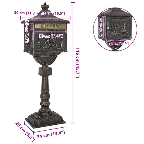 vidaXL Stehender Briefkasten Bronze 42,5 x 29,5 x 117 cm Gussaluminium