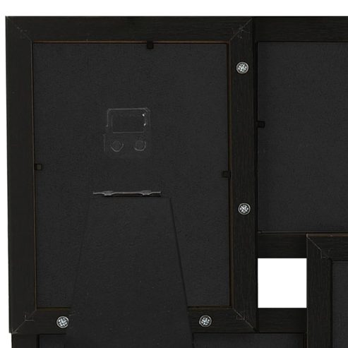 Stellen Sie Ihre schönsten Momente mit diesem Collage Bilderrahmen zur Schau. Ihre Erinnerungen werden stilvoll präsentiert und ein echter Hingucker sein. Der Bilderrahmen hat klassisch gerade Linien und verleiht den schlichten Wänden Ihres Wohnraums eine lebendige und moderne Note. Die MDF-Platte an der Rückseite und das harte PS-Material an der Vorderseite bieten optimalen Schutz. Dank der Verriegelung auf der Rückseite lassen sich Ihre Fotos ganz einfach austauschen. Gestalten Sie mit dem Bilderrahmen Ihre eigene Fotocollage und erschaffen Sie dadurch eine bezaubernde Wanddekoration. Nun können Sie die Familienfotos oder Landschaftsfotos problemlos an der Wand oder am Tisch in Ihrem Wohnzimmer, Schlafzimmer, Büro und Wohnheim platzieren. ** Farbe: Schwarz ** Material: MDF, PS (Polystyrol) ** Geeignet für 4 Fotos von 13x18 cm ** Rückwandstärke: 2 mm ** Jeder Rahmen aneinander befestigt ** Kann leicht geöffnet werden, um jederzeit ein Bild hinzuzufügen ** Hängen Sie es an die Wand oder stellen Sie es mit Staffelei und Aufhänger auf den Tisch