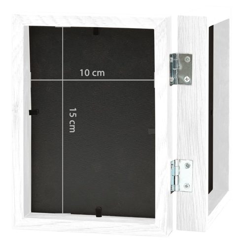 Stellen Sie Ihre schönsten Momente mit diesem trendigen Zweifach-Bilderrahmen zur Schau. Ihre Erinnerungen werden stilvoll präsentiert und ein echter Hingucker sein. Der aufklappbare Bilderrahmen kennzeichnet sich durch klassische gerade Linien und verleiht Ihrem Wohnraum eine lebendige und moderne Note. Die MDF-Platte an der Rückseite und das harte PS-Material an der Vorderseite bieten optimalen Schutz. Dank der Verriegelung auf der Rückseite können Sie Ihre Bilder ganz einfach austauschen. Durch sein Klappdesign kann dieser Fotorahmen ohne Ständer auf dem Tisch stehen. ** Farbe: Weiß ** Material: MDF, PS (Polystyrol) ** Größe: je 10 x 15 cm (B x H) ** Rückwandstärke: 2 mm ** Klappbares Design ** Verfügt über Scharniere zwischen den Rahmen ** Kann ohne Ständer auf den Tisch gestellt werden ** Kann leicht geöffnet werden, um jederzeit ein Bild hinzuzufügen